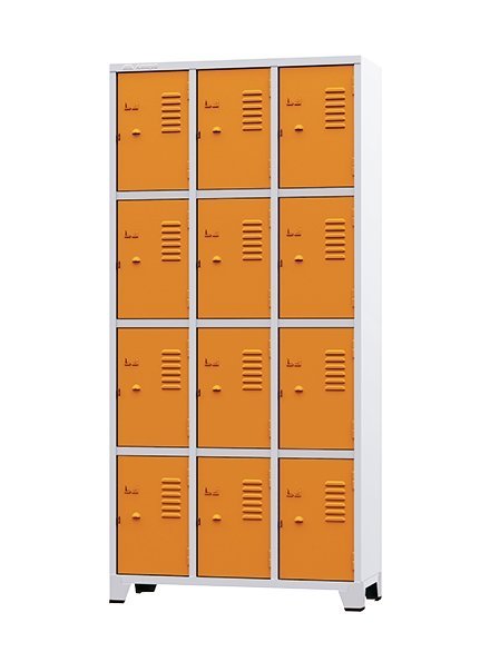 - Conhecido também como guarda roupa de aço é ideal para ambientes como vestiários, academias, supermercados, bancos, almoxarifados, escolas e hospitais, seja para o uso de colaborardes ou clientes. Possui pés com sapatas plásticas protetoras, opção de porta lisa ou perfura, pitão para cadeado ou fechadura conjugada.